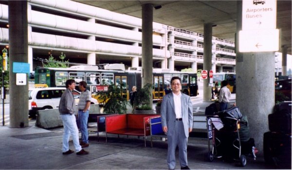 - シアトル空港にて。バスを待っている間の一服です。本文にあるようにクラクラしてた。