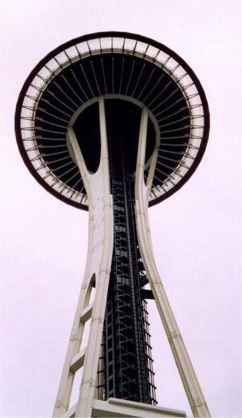 - シアトルタワー(シアトル・ニードル)ですね。下から見上げたところです。実際は夜にあがったんですが、夜の写真はありません。エレベータで登っていったら、途中でハイスクールの卒業パーティに出くわしてしまいました。